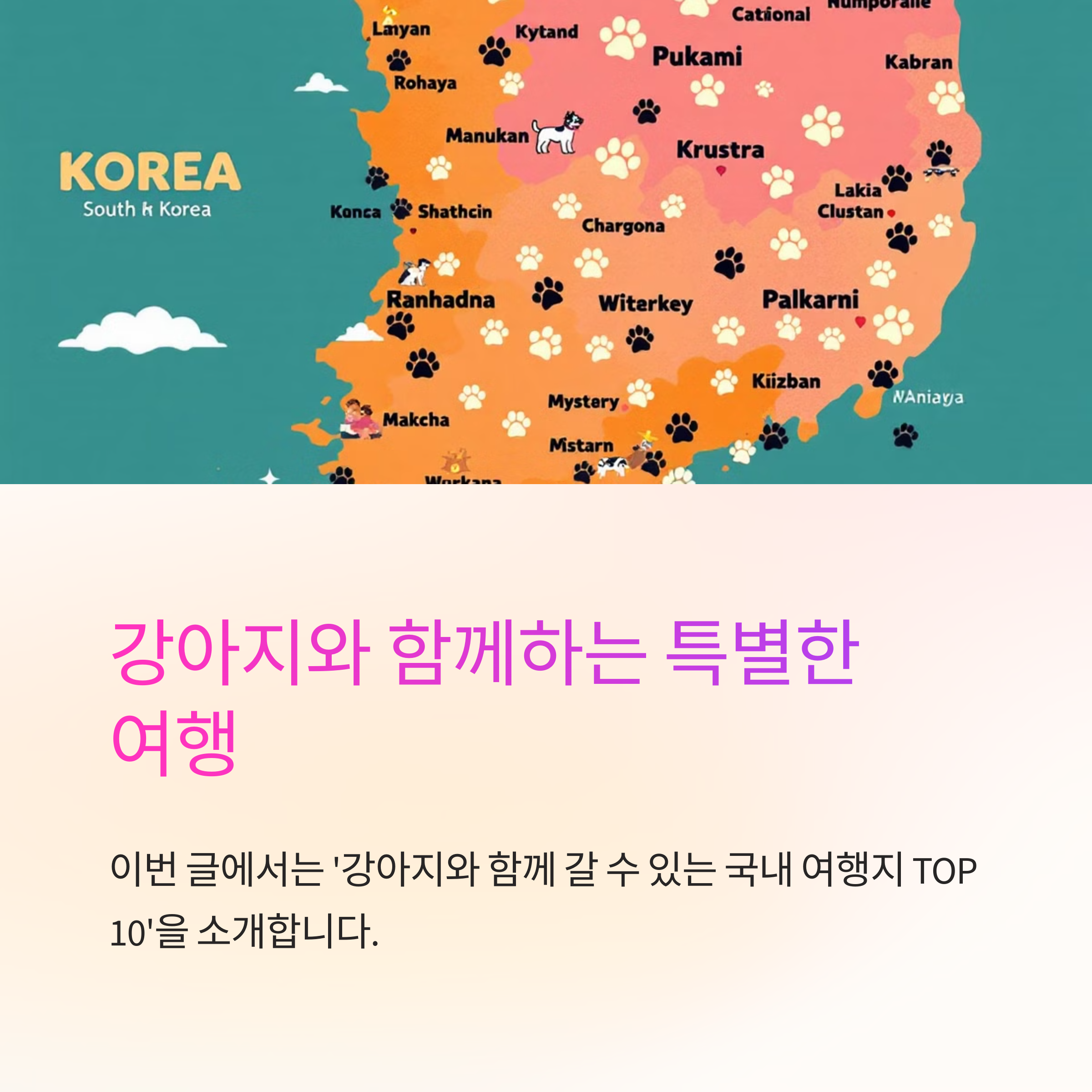 이번 글에서는 ‘강아지와 함께 갈 수 있는 국내 여행지 TOP 10’을 소개하며, 각각의 장소에 대한 특징, 동반 가능 시설, 이용 팁 등을 함께 정리해 드리겠습니다. 펫과의 특별한 시간을 보내고 싶은 분들에게 이 글이 유익한 가이드가 되기를 바랍니다.